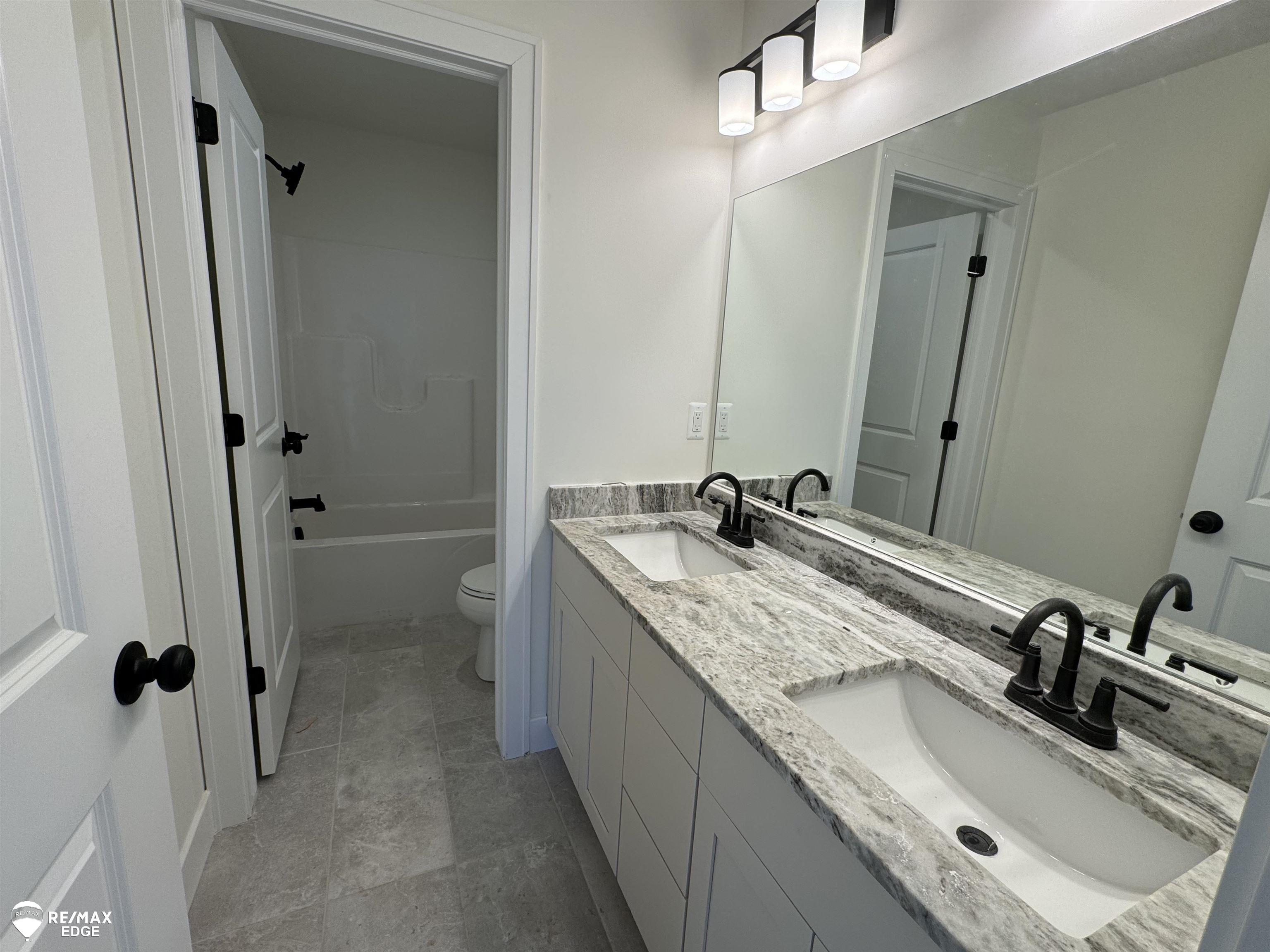Most popular "Amherst Plus" two-story floor plan on a cul de sac lot. This 2,500 sq ft new build features an open main level with a great room and gas fireplace. Informal dining, and a spacious kitchen with soft-close cabinetry, oversized island, white subway tile backsplash, walk-in pantry and Java colored Lafata cabinets. Granite counter tops throughout. A flex room and half bath on the first floor add function and flexibility. Upstairs offers four bedrooms and a full bath. Second-floor laundry. The primary suite has a walk-in closet that’s the talk of the town. The primary bath boasts double sinks, a stand-alone tiled shower and a soaker tub. A full basement and three-car attached garage round out this impressive home. *Photos are of a previous model. Colors and selections vary. *Estimated completion May 2026.