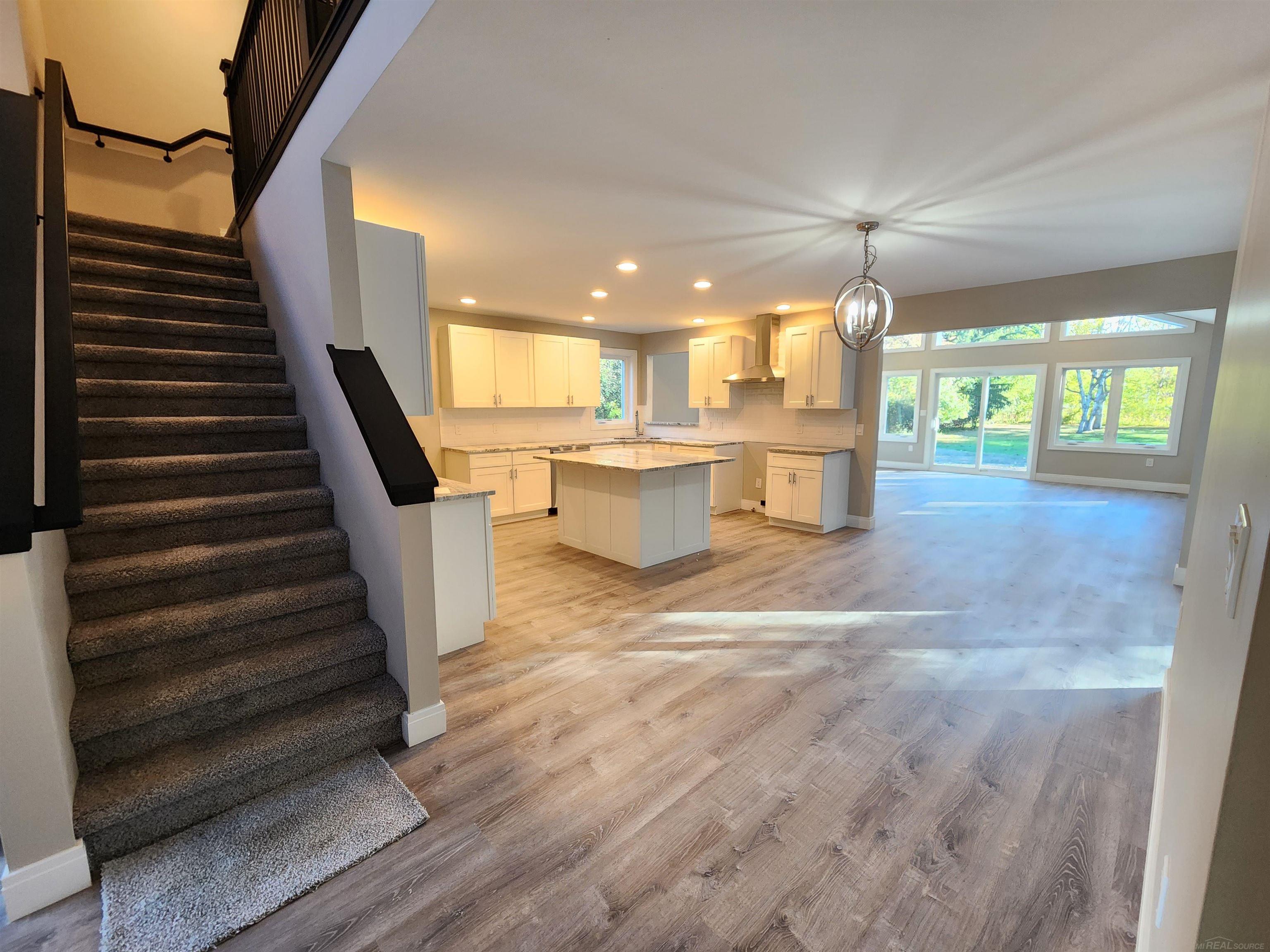 A beautiful remodeled home on ONE ACRE in Southfield. Close to schools, parks, business centers, expressways, shopping and even public transit! Imagine country living within the city and envision drinking your morning coffee in your cathedral ceiling great room or sitting on your new patio watching the deer in your own private oasis before starting, or after finishing up your day. This amazing home features over 2500 square feet of living space-PLUS a full basement! This brick home has a 2 car attached garage, poured concrete back patios and all new mechanical; hvac/water heater/roof/windows and insulation. Upstairs there are 3 carpeted bedrooms with a custom tiled bathroom; and large closets. Fridge, stove, and dishwasher are all new. On the main floor is a living room with custom wainscoting, fireplace, two skylights, beautiful handrails and railings showcasing the staircase. The kitchen is a storage dream with crisp white cabinetry, a huge island with storage and seating for 4; subway tile backsplash, granite counters. The kitchen dining "L" and door wall access to a cement patio waiting for summer cookouts. The great room features a cathedral ceiling, door walls to the back patio and laminate flooring. The primary en suite also features laminate flooring, and access to a beautiful bathroom with granite countertops, sparkling fixtures; water closet; oversized shower and relaxing corner soaking tub. What Are you waiting for? This picturesque setting and spectacular home is available now.